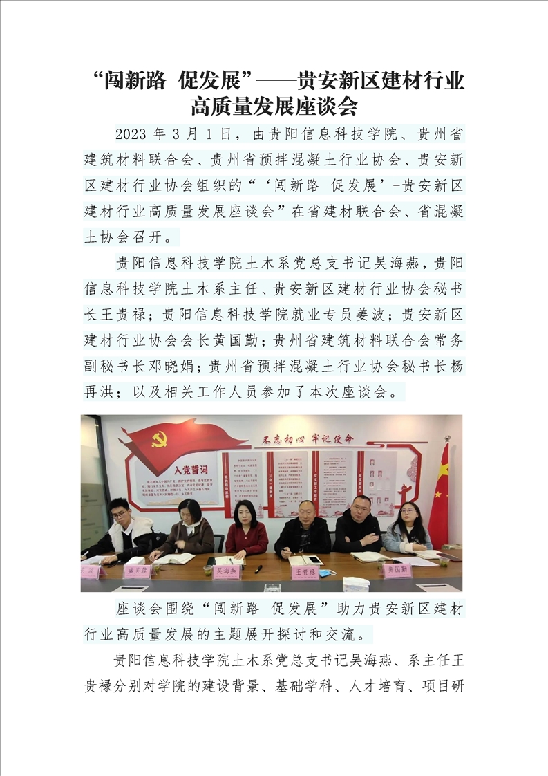 ”闯新路 促发展“——贵安新区建材行业高质量发展座谈会