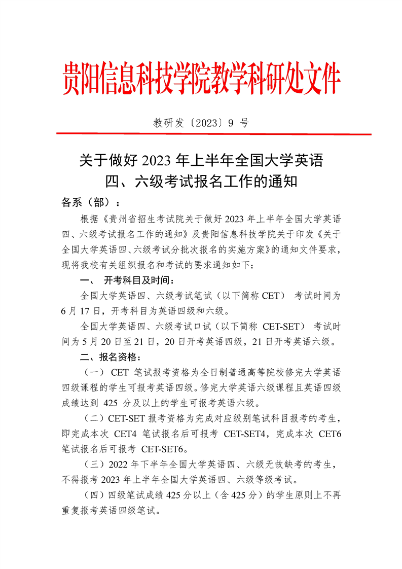 关于做好 2023 年上半年全国大学英语四、六级考试报名工作的通知