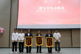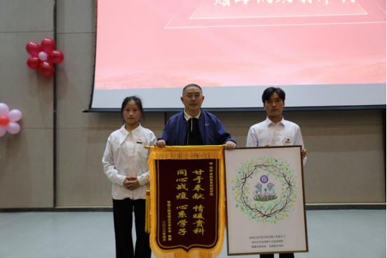 智能工程系团总支学生会代表向母校赠送致谢锦旗。