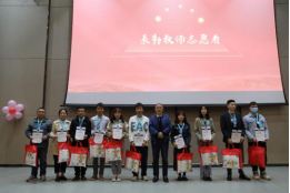 嘉宾为志愿者代表颁发证书,赠送锦旗。