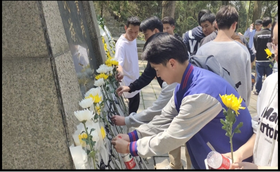 (图为 同学们向先烈敬献鲜花)