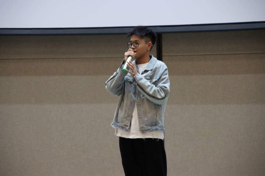 紧接着进行大会第二项,由负责创新创业协会的周很老师发言。周老师告诉我们关于创新创业的相关知识并对到场观众表示歉意,因为设备原因,此次活动并没有十分的完美,但是所谓的不完美才是完美。紧接着是14届创新创业协会正会长徐晟昊发言。他为我们讲述了他与创新创业的故事。用幽默的话语,讲述自己创业的经历,他谈到只要有目标就要一直坚持,不要因为结果而去努力,爱拼才会赢