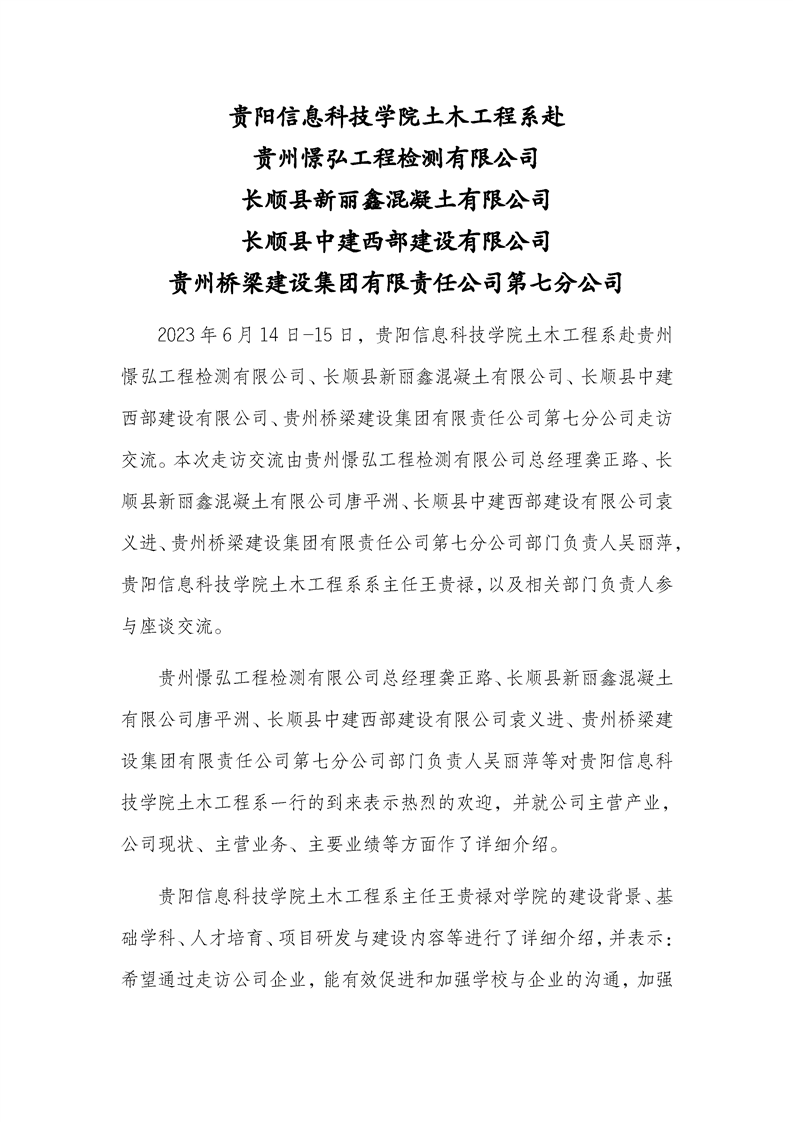 pp电子官方网站土木工程系赴贵州憬弘工程检测有限公司、长顺县新丽鑫混凝土有限公司、长顺县中建西部建设有限公司、贵州桥梁建设集团有限责任公司第七分公司
