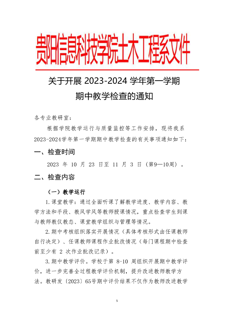pp电子官方网站土木工程系关于开展2023-2024学年第一学期期中教学检查的通知
