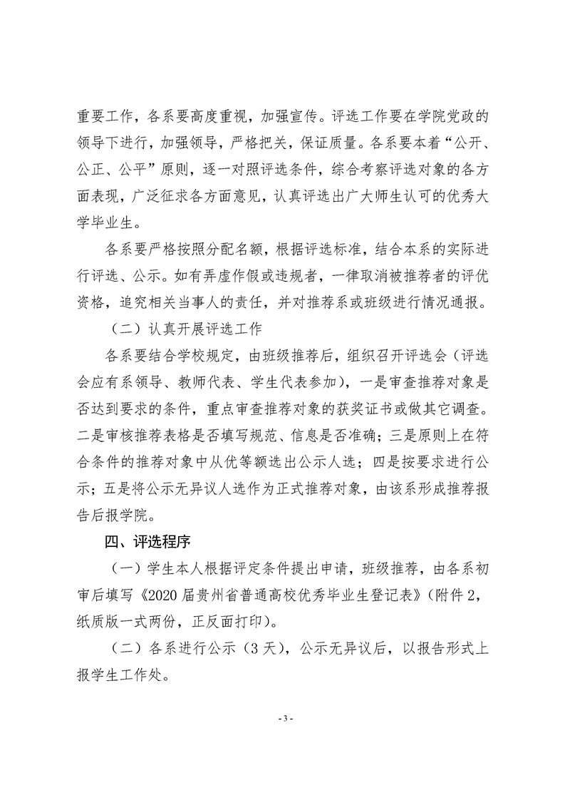 贵州大学明德学院关于评选2020届贵州省普通高等学校优秀大学毕业生的通知