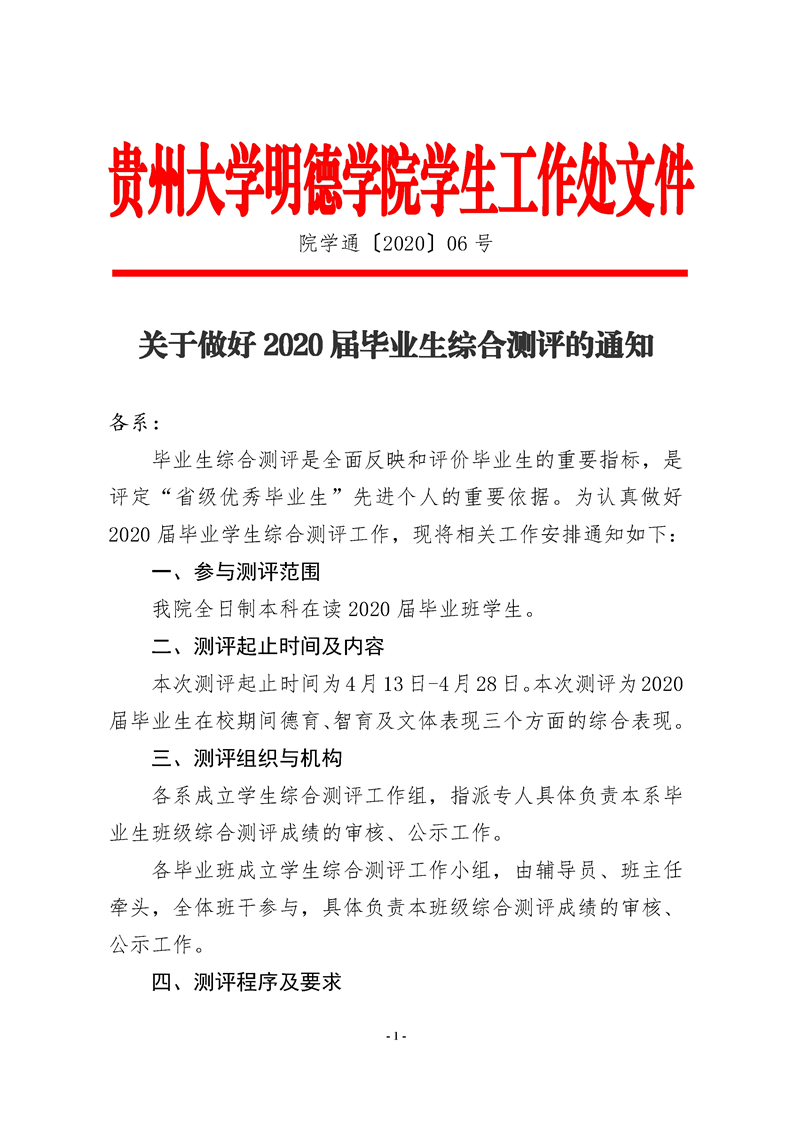 关于做好2020届毕业生综合测评的通知