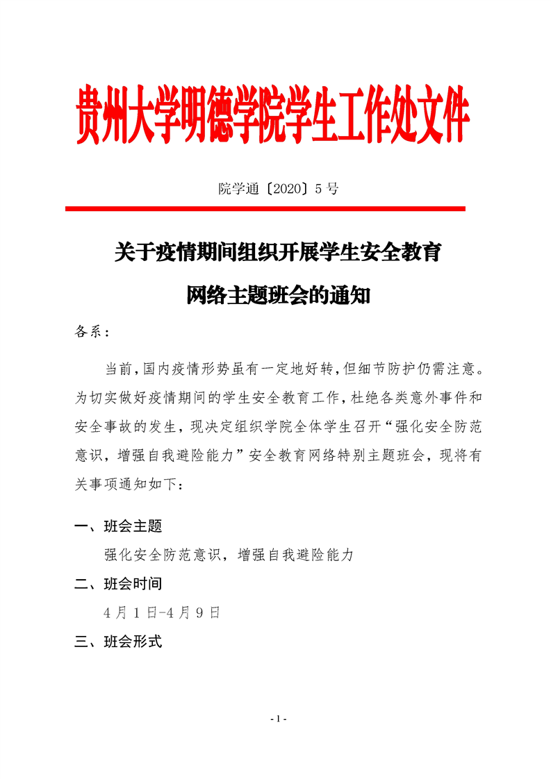 关于疫情期间组织开展学生安全教育网络主题班会的通知