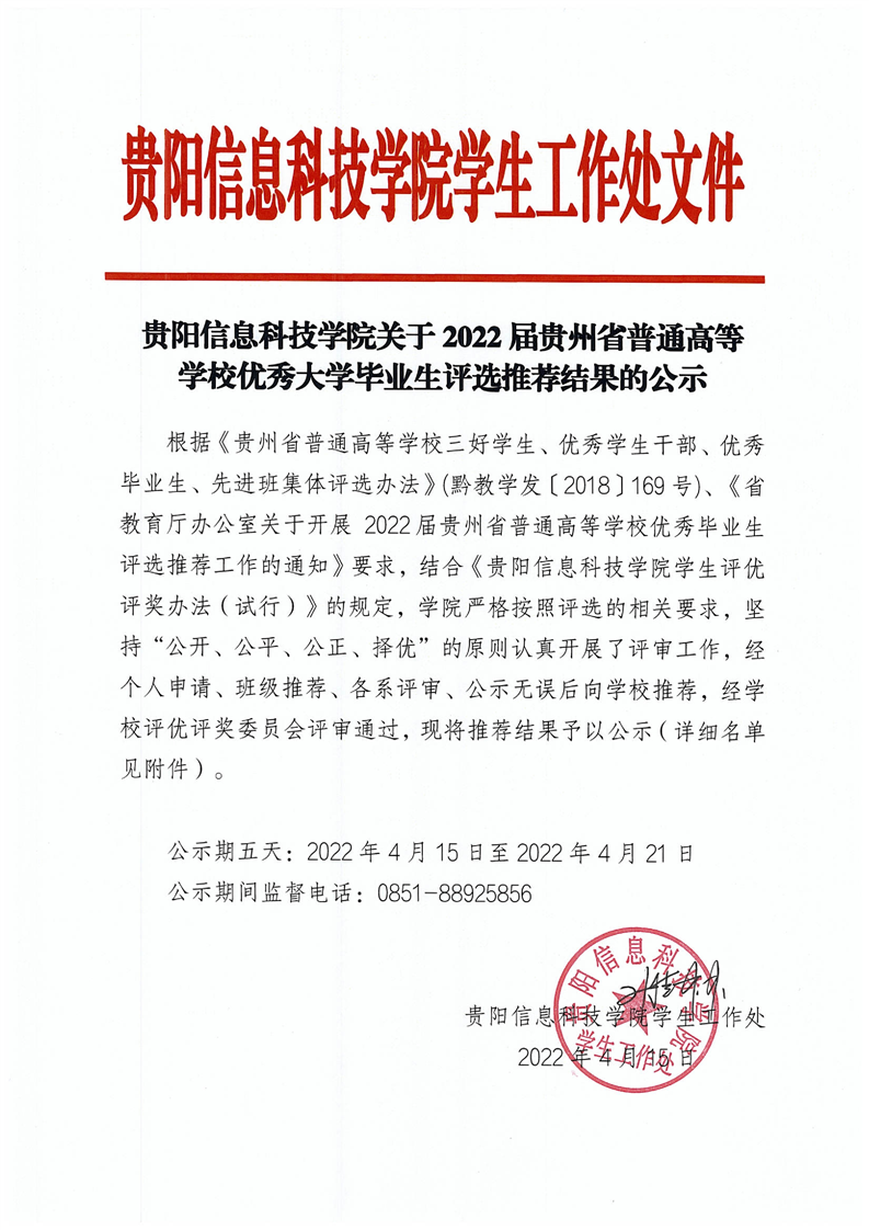pp电子官方网站关于2022届贵州省普通高等学校优秀大学毕业生评选推荐结果的公示