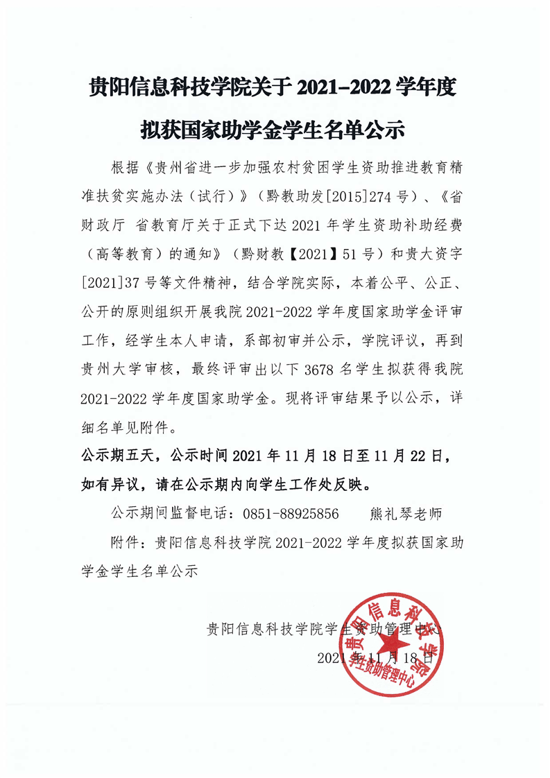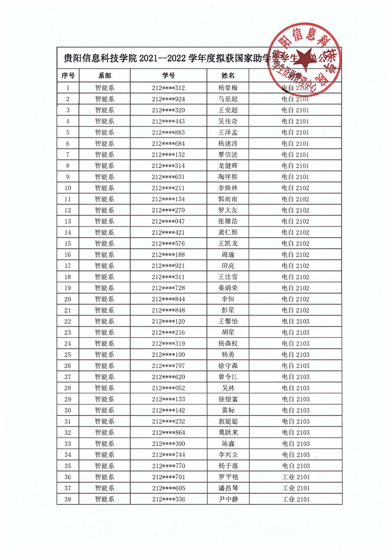 pp电子官方网站关于2021-2022学年度拟获国家助学金学生名单公示