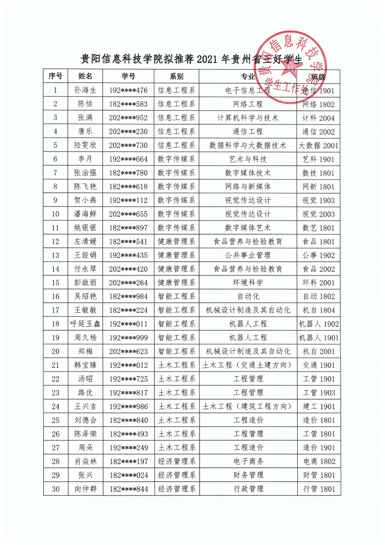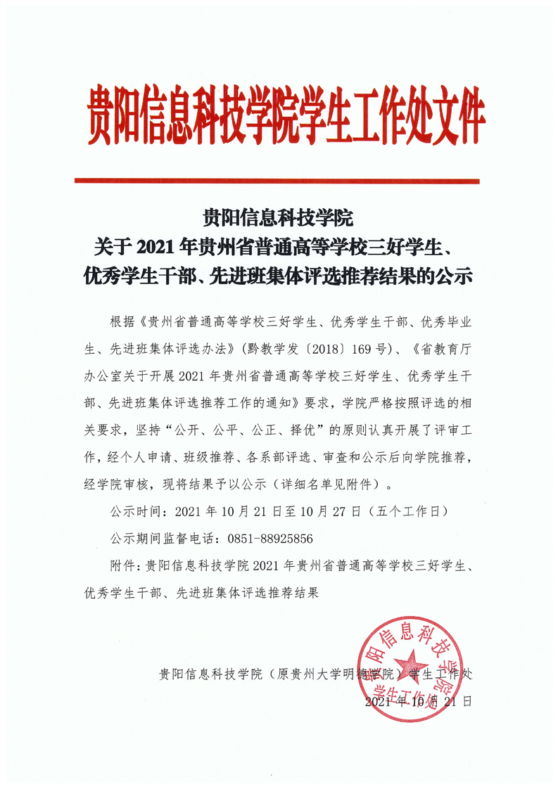 pp电子官方网站关于2021年贵州省普通高等学校三好学生、优秀学生干部、先进班集体评选推荐结果的公示