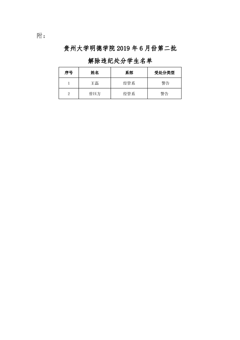 贵州大学明德学院关于解除陈婷等8名学生违纪处分的公示