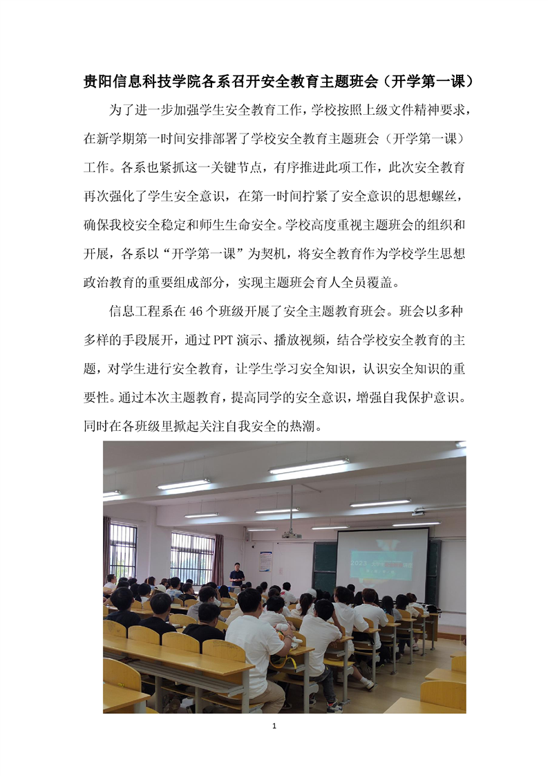 pp电子官方网站各系召开安全教育主题班会(开学第一课)