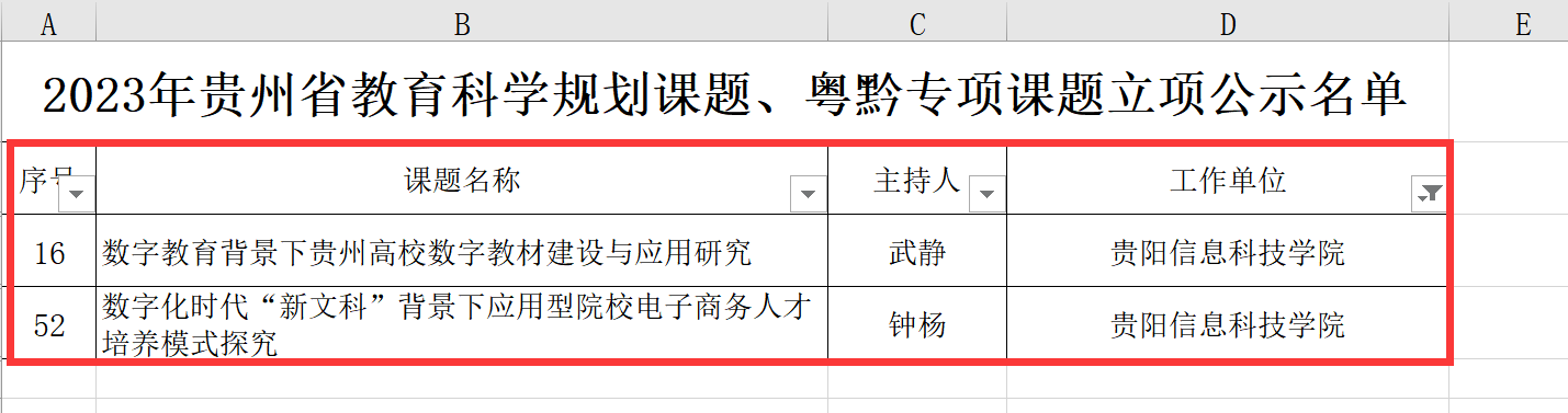 年贵州省教育科学规划课题、粤黔专项课题立项公示