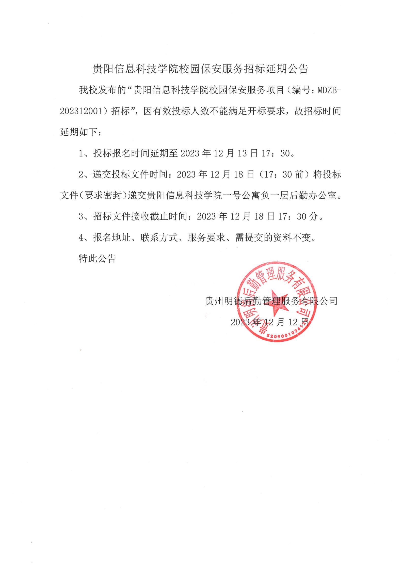 pp电子官方网站校园保安服务招标延期公告
