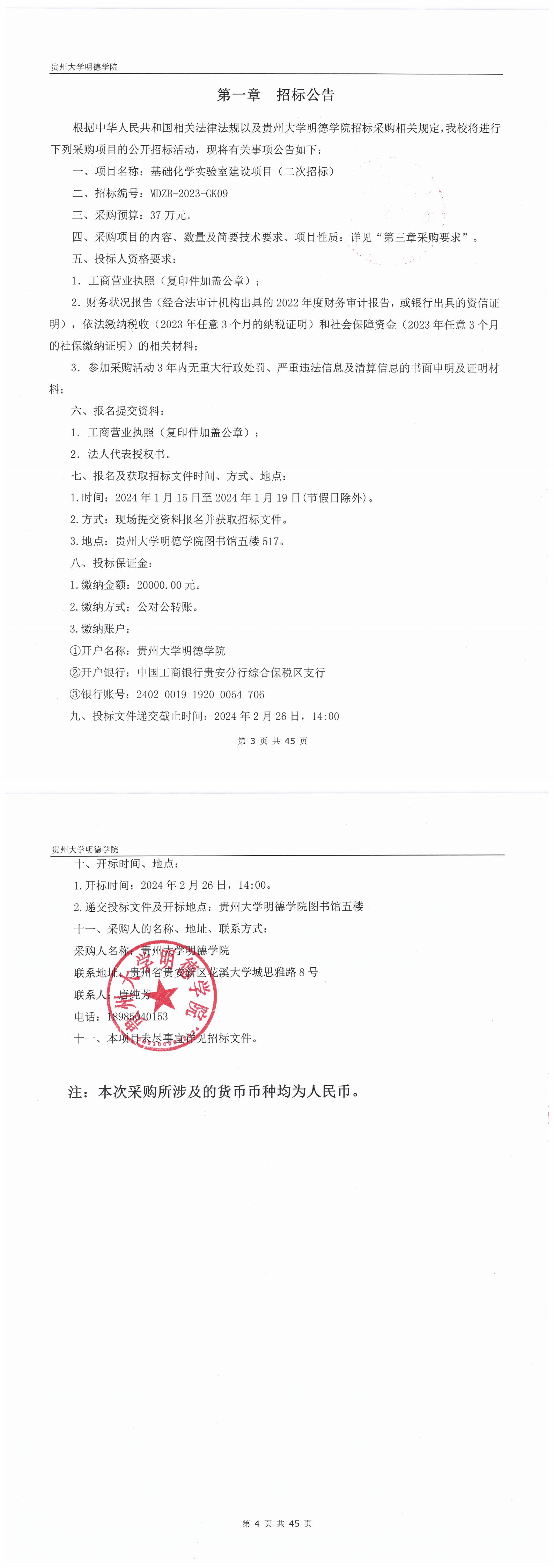 贵州大学明德学院基础化学实验室建设项目(二次招标)中标(成交)公告