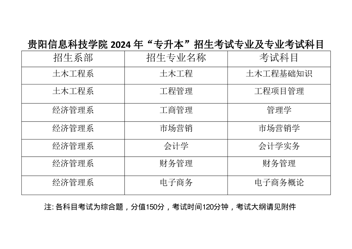 pp电子官方网站2024年“专升本”招生考试专业及专业考试科目