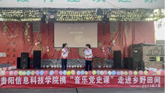 在“百年党史·一路红歌”红色文化教育品牌影响和引导下,pp电子官方网站诞生了一支“声入红心”学生演唱团。同学们在参与“百年党史·一路红歌”音乐党史课的备课、排练和演出过程中,不仅使自己潜移默化地让党的理论知识入脑入心,而且在表演中让同龄段的同学观众也入脑入心,深受党史教育。2023年夏天,在大学生“三下乡”社会实践活动中,“声入红心”演唱团将“百年党史·一路红歌”音乐党史课搬进了遵义市桐梓县官仓镇红旗村,在大山深处用“讲、唱、诵、演”等多种形式,给当地村民和中小学生带来了一场特别的乡村音乐会,让广大群众接受党史教育,让爱国主义精神在学生心中牢牢扎根,同时对于文化赋能乡村振兴也起到了推动作用,得到当地党员和群众的一致好评。村里81岁的老党员付行磊听着经典红歌热泪盈眶地说:“入党50多年,看见我们这代人的故事,有后人传承和歌唱,我开心也放心了。”