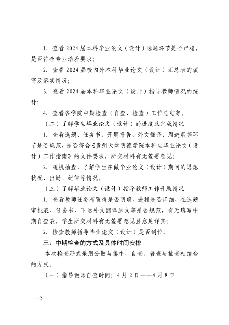 附件2:贵州大学明德学院2024届毕业论文(设计)中期检查自查报告表(学院用).doc