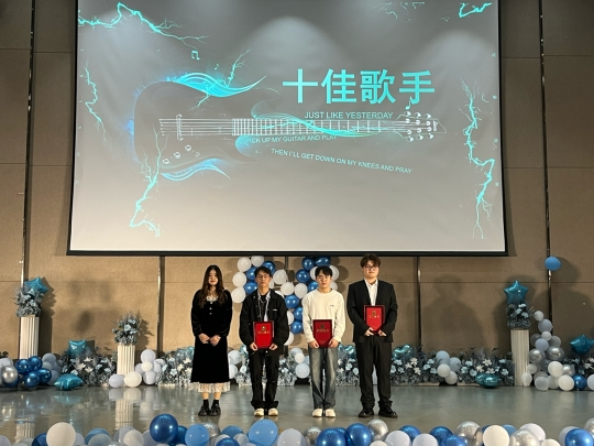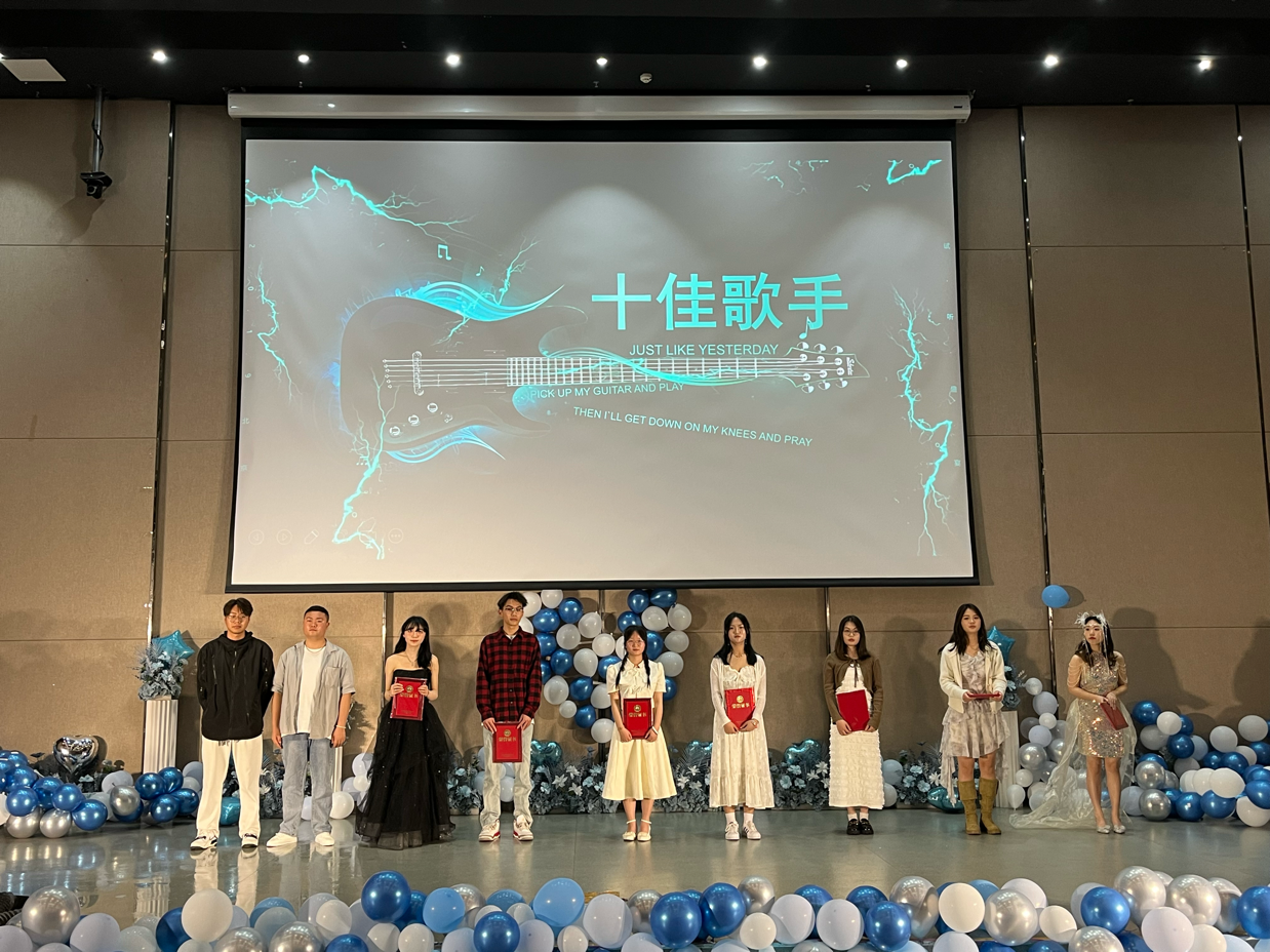 活动最后,由2023届贵科院校园十佳歌手的冠军周泰钰为获奖选手颁奖并合影留念。