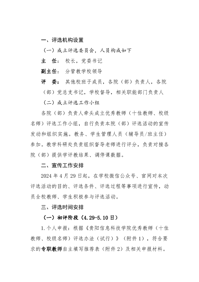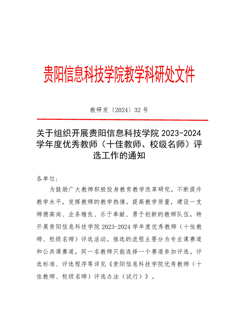 关于组织开展pp电子官方网站2023-2024学年度优秀教师(十佳教师、校级名师)评选工作的通知