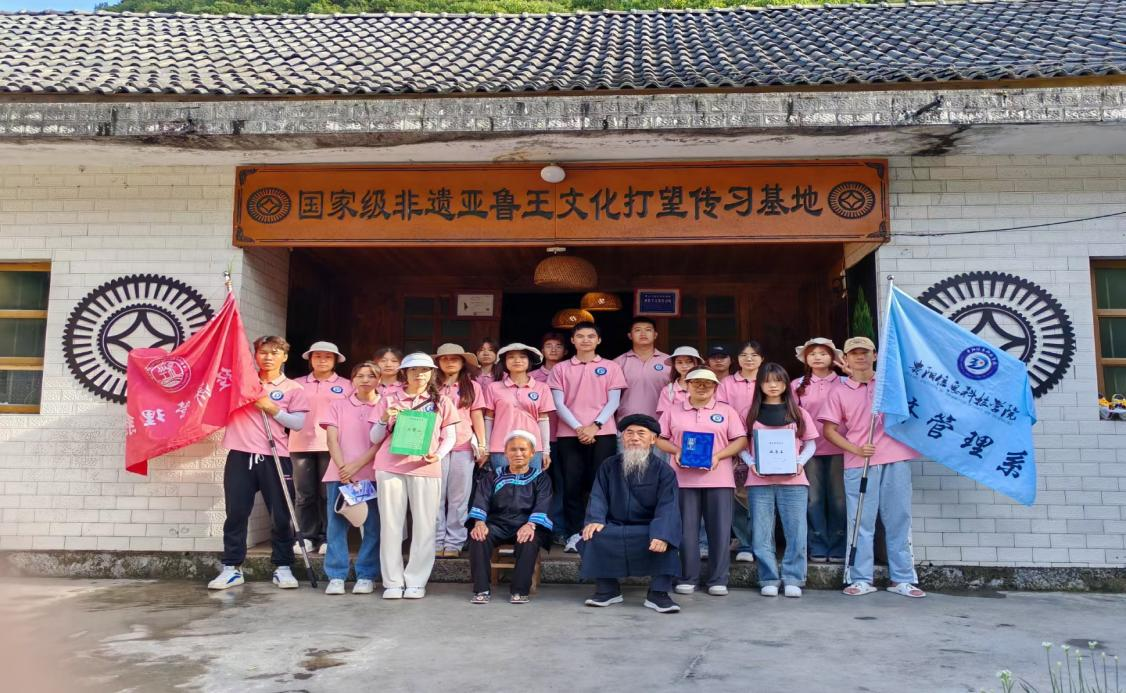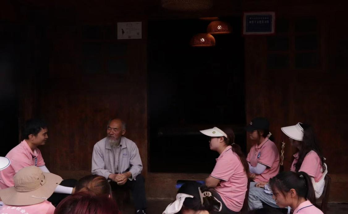 猴场镇打哈村是典型的少数民族聚居村,全村大部分为苗族,是苗族传承了两千多年英雄史诗《亚鲁王》的起源地。7月21日,“萤火探兴”春晖志愿服务队来到打哈村国家级非遗亚鲁王文化传习基地,拜访亚鲁王文化国家级传承人—88岁的陈兴华老人。他向大家讲解了亚鲁王文化的基本内容,队员们了解到《亚鲁王》所吟唱的是西部苗人创世与迁徙征战过程中波澜壮阔的历史,涉及古代人物上万人,苗语地名数百个,古战场近二十个,是展现苗族古代社会的“百科全书”。通过陈兴华老人的耐心讲解,队员们对亚鲁王文化的认识更加全面,看到了昂扬向上、精彩纷呈的亚鲁王文化。由于传承工作形势严峻,陈兴华老人提及亚鲁王的传承方式由过去的口传心授变为今天的录音文本传授、由只能在正月和七月学习变为现在随时可以学、由传男不传女变为男女都可以学习,队员们认为这一系列改变对文化的传承工作有着积极的意义,是值得借鉴的文化传承经验。