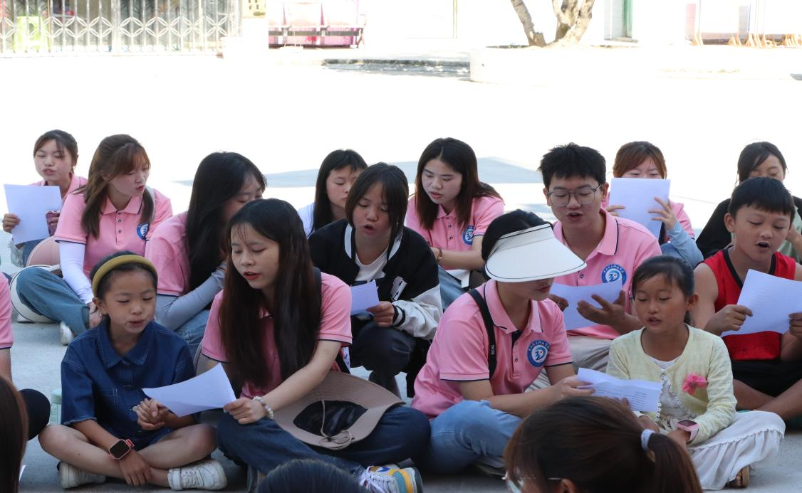 音乐课上,服务队与小朋友共唱《童年》