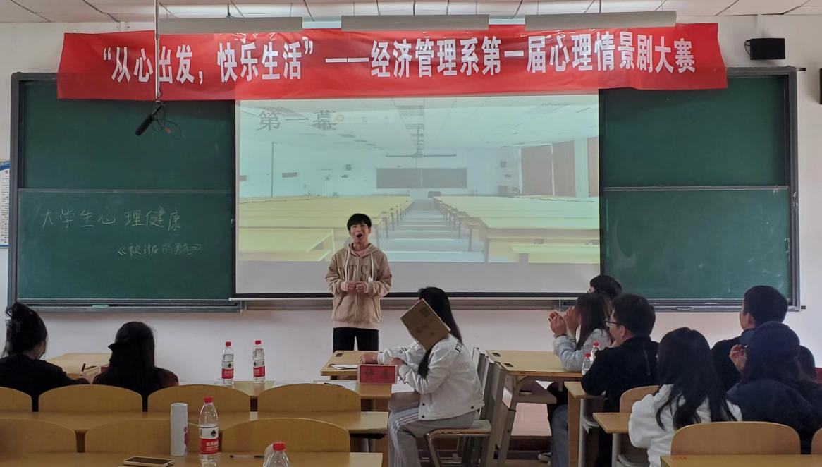 新闻网讯(供稿 马锟 供图 马锟)为了充分发挥学生自我教育功能,提升学生的心理品质,同时展现我系学生丰富多彩的业余生活和蓬勃向上的精神风貌,营造积极健康的校园心理文化氛围,经济管理系于2023年5月12日在B508教室举办了经管系第一届心理情景剧大赛。经管系学工办主任莫建活、团委书记余鑫、专职教师赵应菊、辅导员马锟以及教学科研处教师熊乃儋担任本次大赛评委。