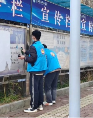 为清洁和美化校园,进一步培养学生劳动意识和吃苦耐劳的的能力,弘扬奉献、友爱、互助、进步的志愿服务精神。2024年3月5日上午,青年志愿者协会组织社团小伙伴们清理学院宣传栏顽固污渍。在此过程中,大家都积极参加,以自己的辛勤劳动为校园美丽环境贡献绵薄之力。