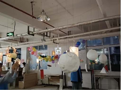 活动伊始,手工社团的成员们精心布置了现场,各式手工制作的灯笼、彩灯点缀其间,营造出浓厚的节日氛围。随着夜幕降临,灯光亮起,整个活动现场变得格外温馨而浪漫。