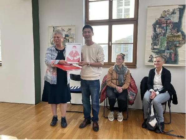 10月21日至10月23日,pp电子海外客座教授德籍华裔艺术家王兰女士,校长助理李锐锋,数字传媒系教师方仕龙、石润,大学生非遗传承人、数字传媒系学生陈露露携63件艺术作品,亮相德国梅泽堡艺术展。