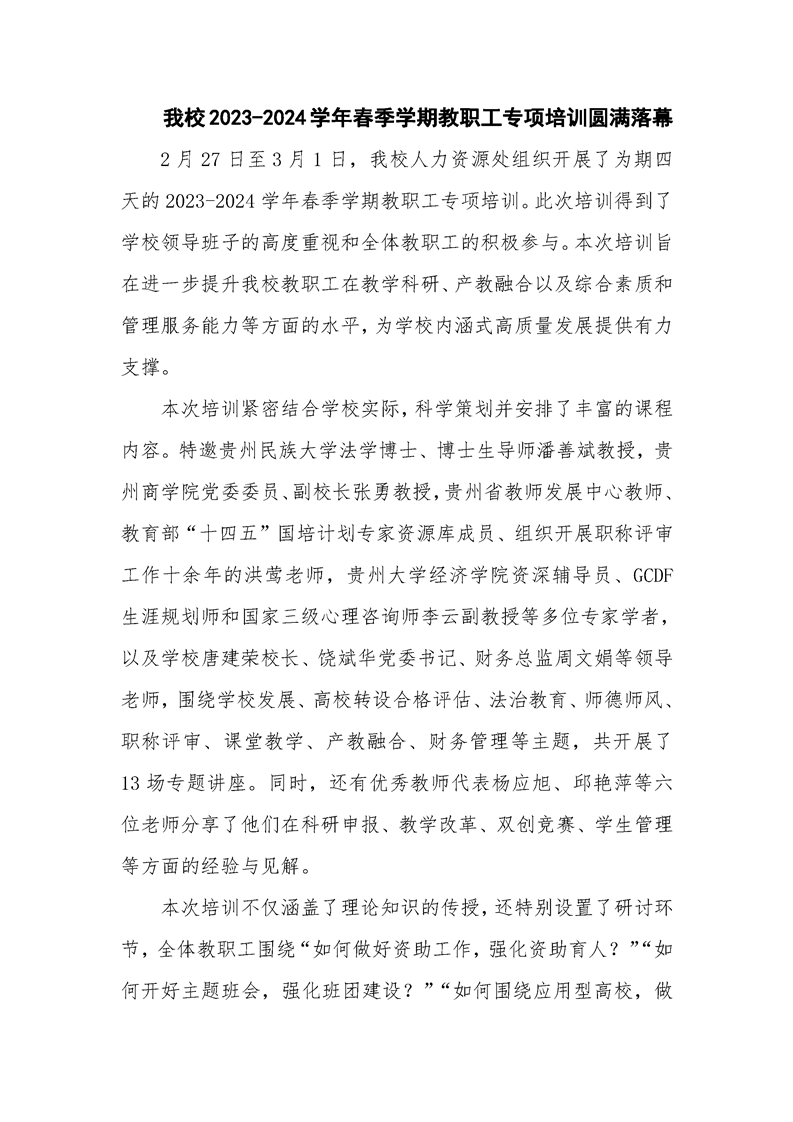 pp电子2023-2024学年春季学期教职工专项培训圆满落幕