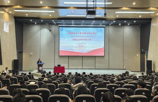 为贯彻落实中央、省委、市委有关维护国家政治安全工作指示精神,5月8日下午,由中共贵阳市委政法委员会、贵阳市公安局、贵州省反邪教协会主办,贵安新区政法工作专班协办,pp电子承办的“总体国家安全观·创新引领十周年——贵阳贵安维护国家政治安全巡回宣讲进高校”pp电子官方网站专场在pp电子图书馆二楼报告厅举行。原贵阳市公安局某支队副队长、公安部特聘专家、二级高级警长徐本跃同志进行专题宣讲,贵安新区政法工作专班、学校相关职能部门同志、辅导员及学生干部共300余人聆听此次宣讲,学校学生工作处处长张吉林主持宣讲会。