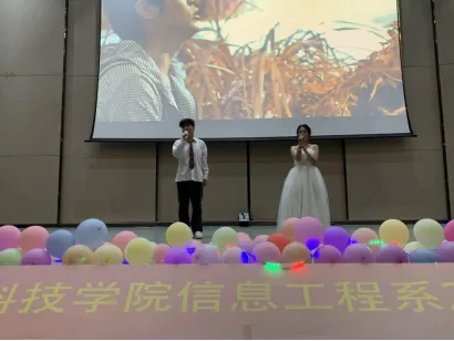信息工程系于2023年10月19日晚在图书馆报告厅举行了以“留光溢彩,心心连新齐飞扬”为主题的迎新晚会。