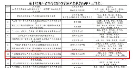 由数字传媒系杨勤、武静、李锐锋、张晓东、陈宾、夏腾飞、李鹏、叶行高、邓磊等教师团队共同完成的教学成果项目《“包豪斯教育模式”在民办院校数字艺术专业的创新与实践》荣获三等奖。