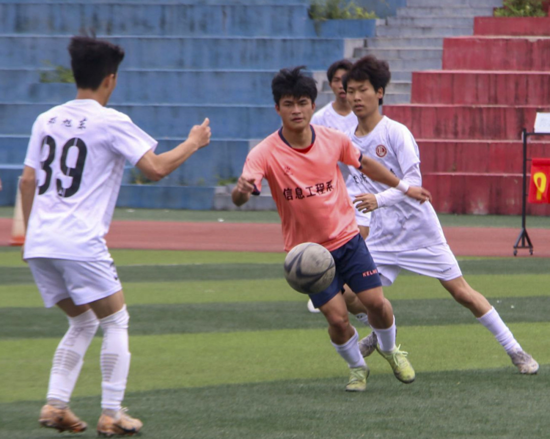 男子足球赛季军争夺战中,每位球员热血沸腾,似乎心中的那份热烈将冲破藩篱。经济管理学院与信息工程学院为我们献上了一场精彩绝伦的比赛。信息工程学院在上半场以1:0的比分暂时取得了领先,经济管理学院不甘示弱,在下半场奋勇直追,在最后时刻,经济管理学院的79号球员胡勋精准射门。最终,经济管理学院以2:1胜于信息工程学院,并获得本届校园体育节男子足球赛的季军。