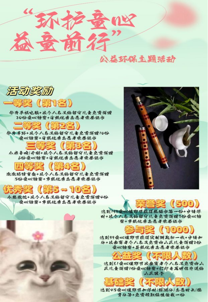为了培养大学生的绿色环保意识,鼓励大学生以实际行动参与到环境保护中来。近日,pp电子官方网站笛箫协会举办了“环护童心,益童前行”的环保公益主题活动。