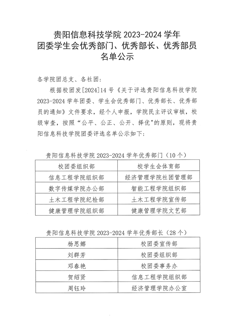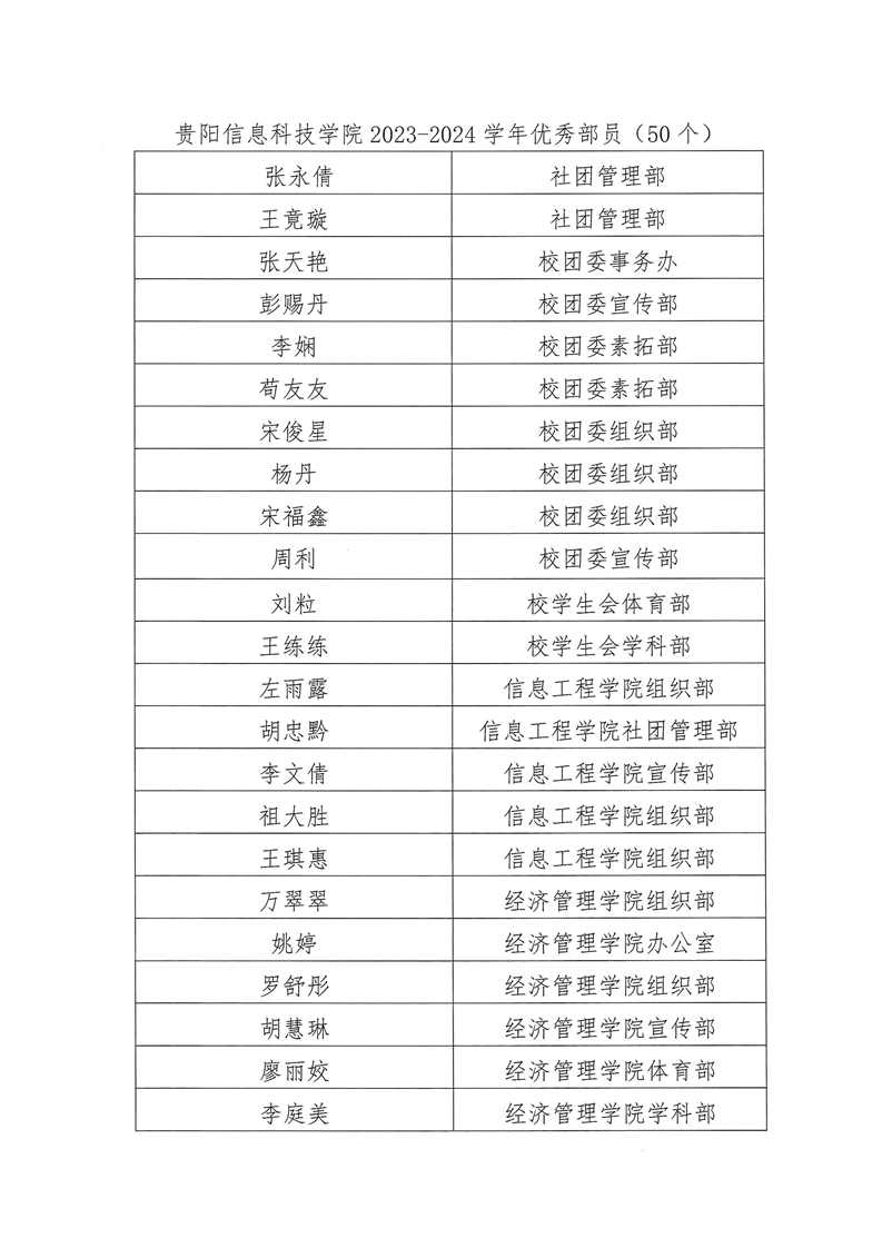 pp电子官方网站 2023-2024 学年团委学生会优秀部门、优秀部长、优秀部员 名单公示