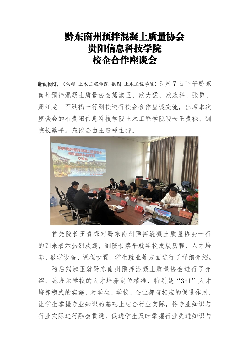 黔东南州预拌混凝土质量协会pp电子官方网站校企合作座谈会