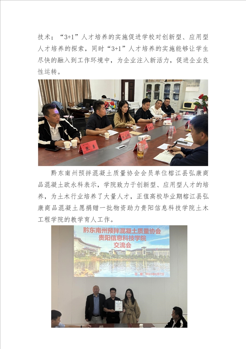 黔东南州预拌混凝土质量协会携贵州广润混凝土有限公司、贵州海砼商品混凝土有限公司、榕江县弘康商品混凝土到校座谈交流
