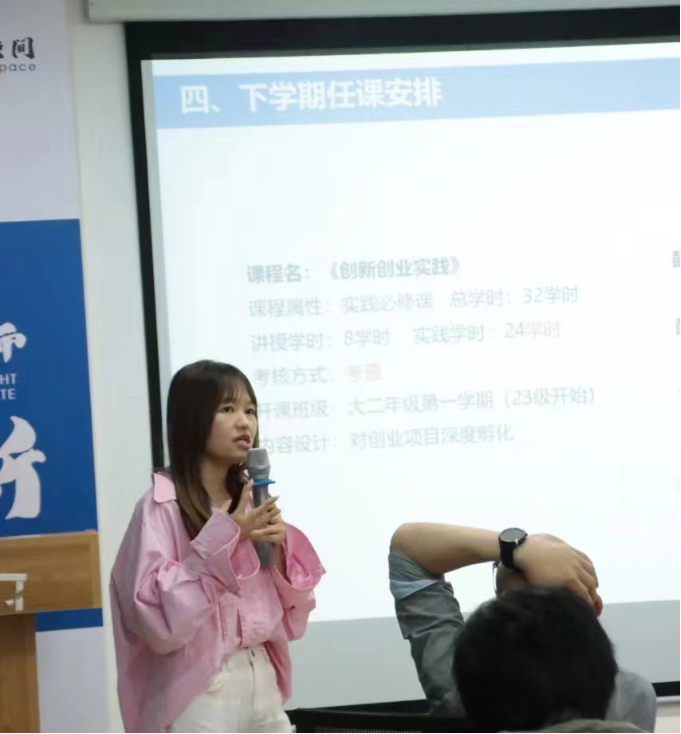 双创中心罗晓梅老师提到,为推进双创教育与专业教育有机融合,学校特设系统性创新创业课程体系。以理论教学结合竞赛实践的方式培养学生的创新思维与创业精神,促进学生将专业知识与双创实践融合转化,将开设《创新创业实践》课程,同时,为了扩充师资队伍,会开展一系列校内外的师资培训,提升老师的竞赛指导水平与双创教学水平。此外,还对前期教学检查工作中出现的问题进行整改,并对下学期任课工作作出安排。
