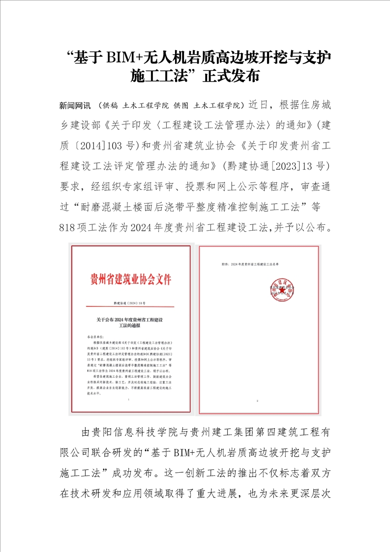 “基于BIM+无人机岩质高边坡开挖与支护施工工法”正式发布