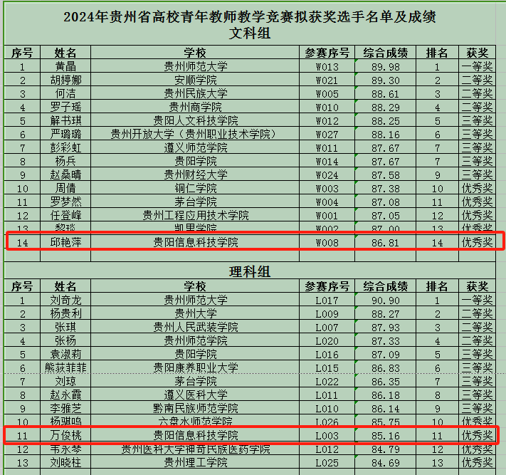 6月20日下午,2024年贵州省高校青年教师教学竞赛在贵州师范大学圆满落幕。据悉,此次竞赛共有全省69所高校、8所附属医院的235名选手参加了此次省级竞赛。pp电子选派的4位参赛教师中,经济管理学院邱艳萍老师荣获文科组优秀奖,公共教学部万俊桃老师荣获理科组优秀奖。这两项荣誉的取得,标志着pp电子青年教师在贵州省青年教师教学竞赛的历史上实现了零的突破,展现了pp电子深化教育教学改革、加强课程建设的显著成效。