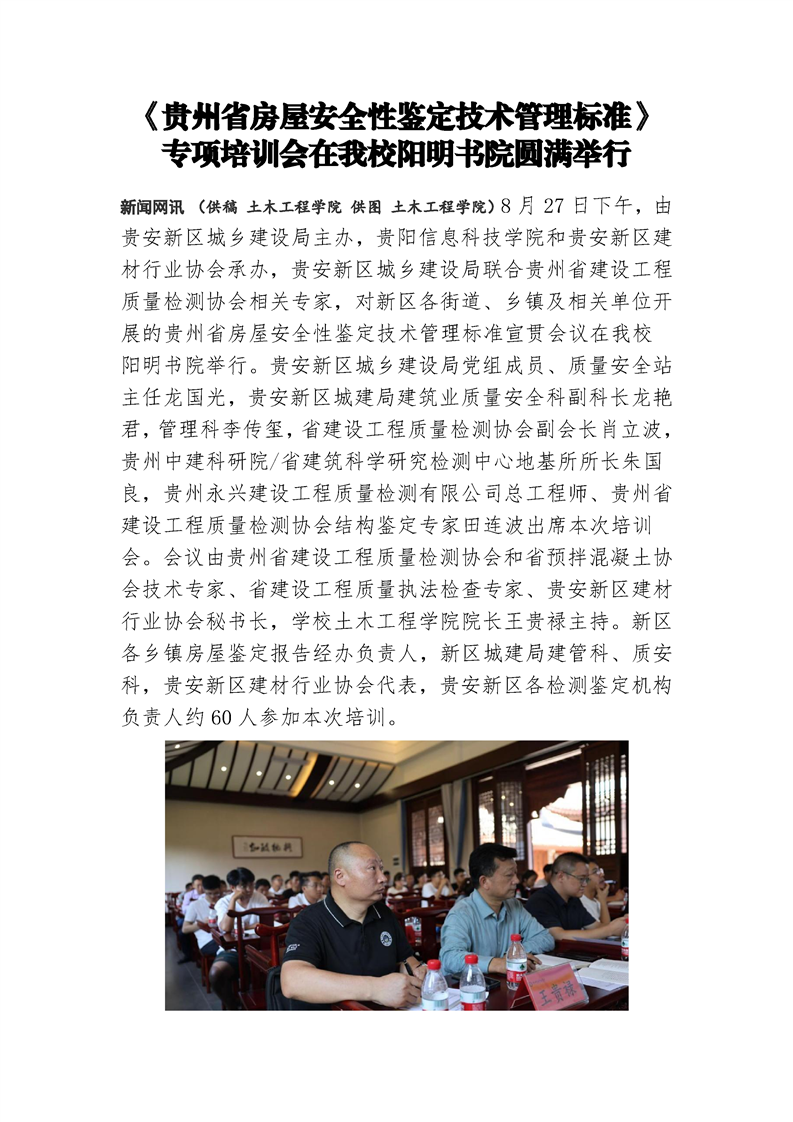 《贵州省房屋安全性鉴定技术管理标准》专项培训会在pp电子阳明书院圆满举行