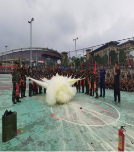 全部参演学生到达安全区域。随后,贵安新区消防支队宣讲员进行消防知识培训,讲解了高、低楼层的逃生方法;火灾报警的基本原则、具体操作步骤和注意事项;宿舍消防安全知识,如禁止吸烟,禁止使用明火,禁止使用大功率电器等;最后现场教学干粉灭火器的使用并现场演示。