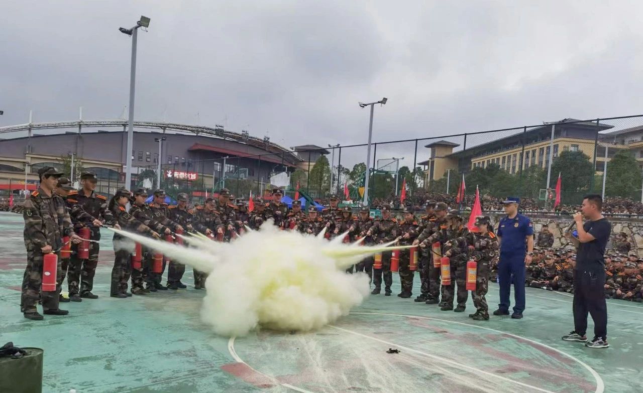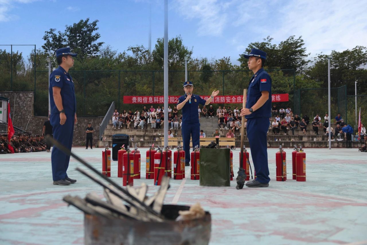 全部参演学生到达安全区域。随后,贵安新区消防支队宣讲员进行消防知识培训,讲解了高、低楼层的逃生方法;火灾报警的基本原则、具体操作步骤和注意事项;宿舍消防安全知识,如禁止吸烟,禁止使用明火,禁止使用大功率电器等;最后现场教学干粉灭火器的使用并现场演示。