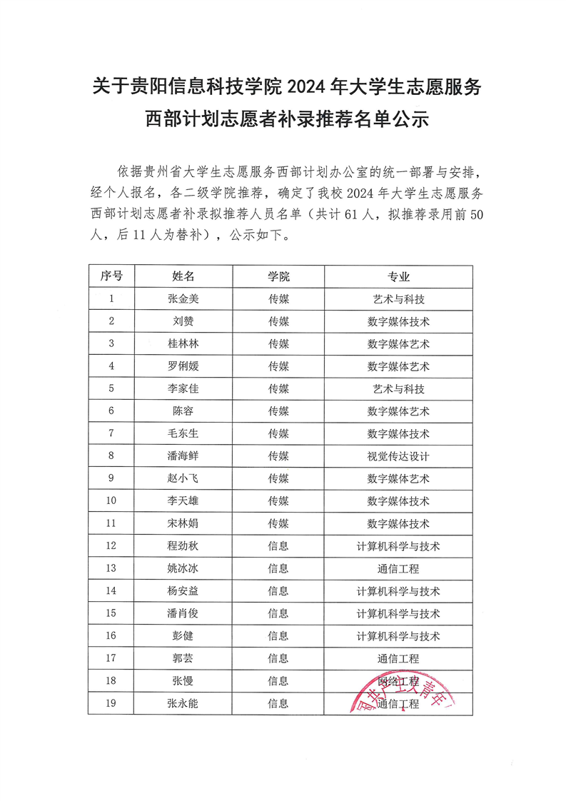 关于pp电子官方网站2024年大学生志愿服务西部计划志愿者补录推荐名单公示