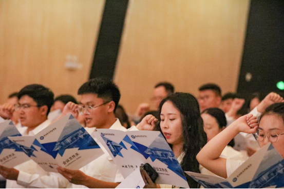 与会领导为受表彰教师颁发了荣誉证书后,经济管理学院邱艳萍老师带领全体新入职教师进行了宣誓。