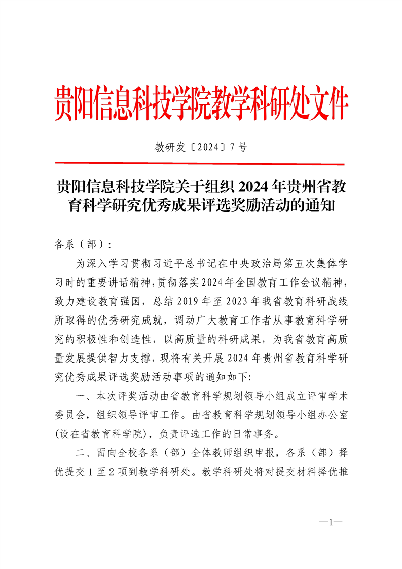 pp电子官方网站关于组织2024年贵州省教育科学研究优秀成果评选奖励活动的通知
