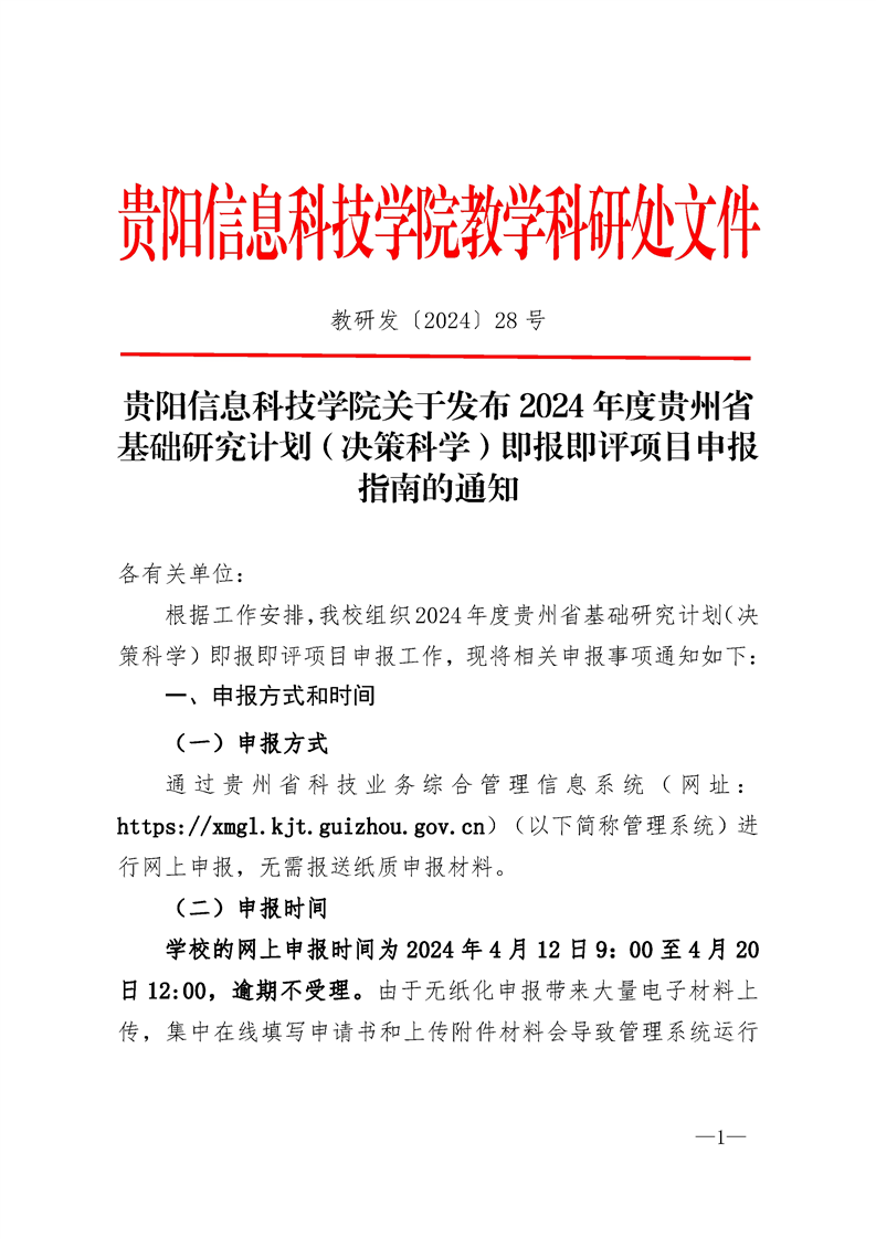 pp电子官方网站关于发布2024年度贵州省基础研究计划(决策科学)即报即评项目申报指南的通知