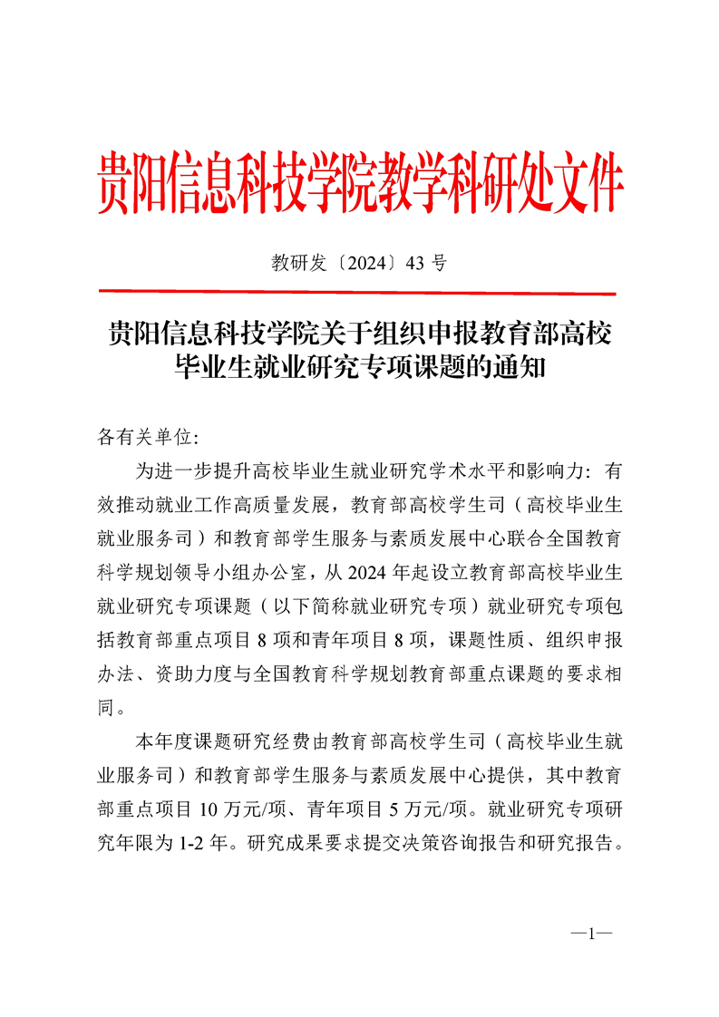 pp电子官方网站关于组织申报教育部高校毕业生就业研究专项课题的通知